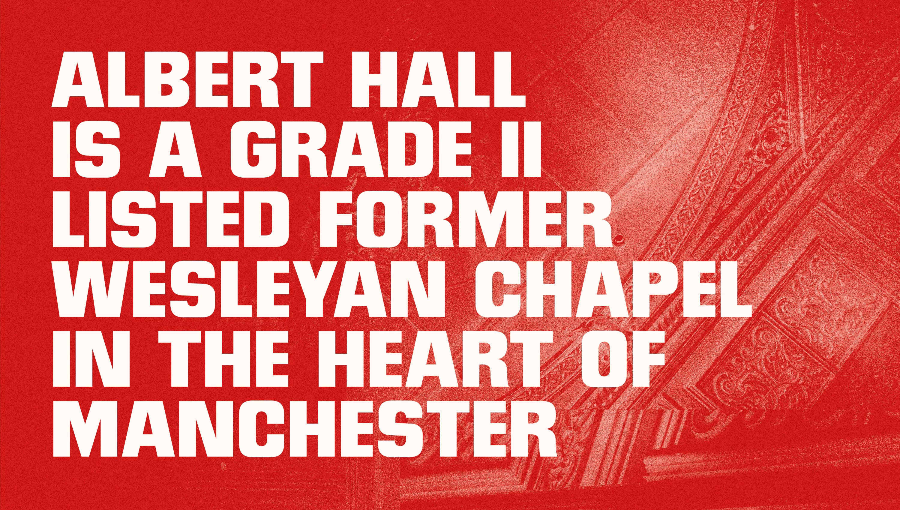 Albert Hall is a Grade II listed former Wesleyan Chapel in the heart of Manchester city centre which was hidden away for over 40 years before being restored into a stunning music and events space.