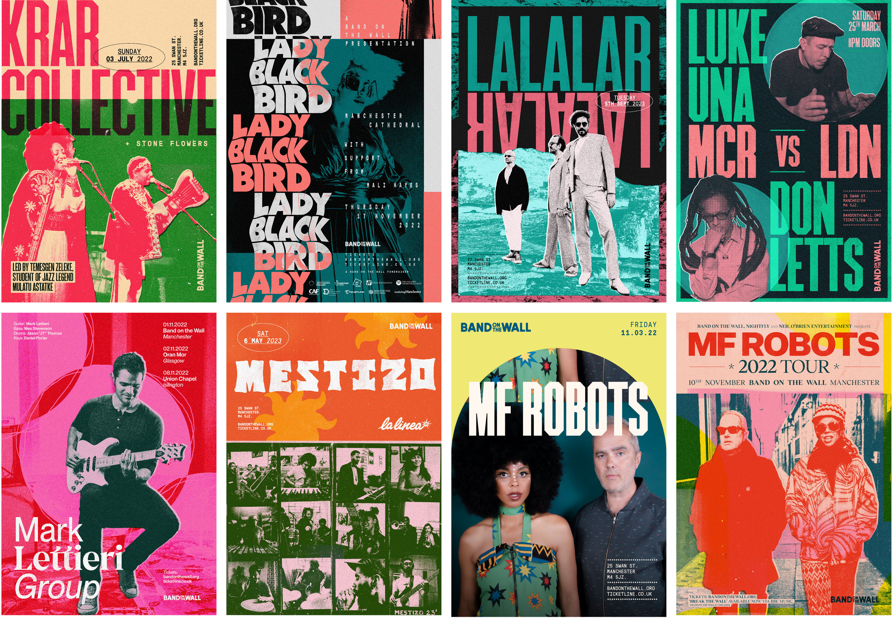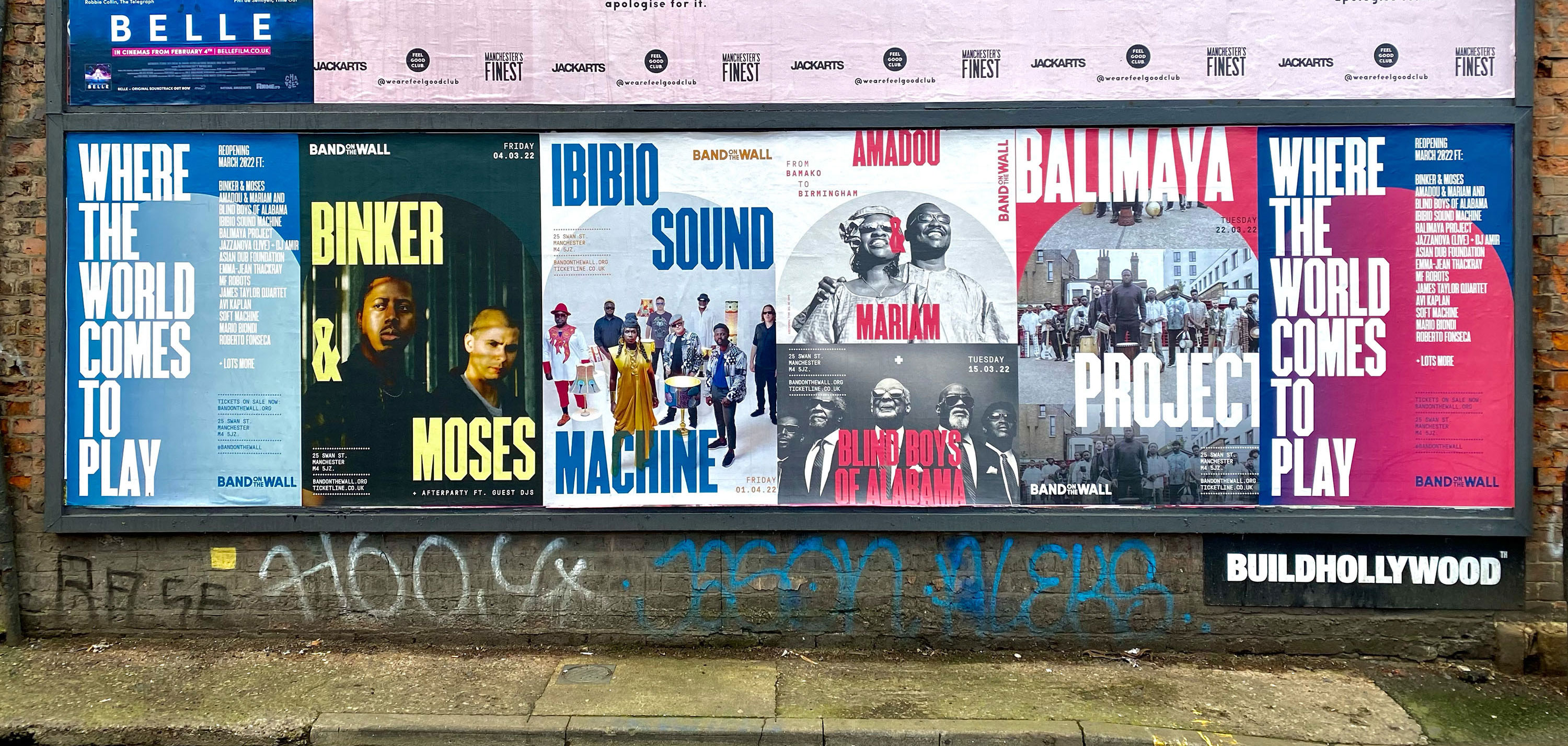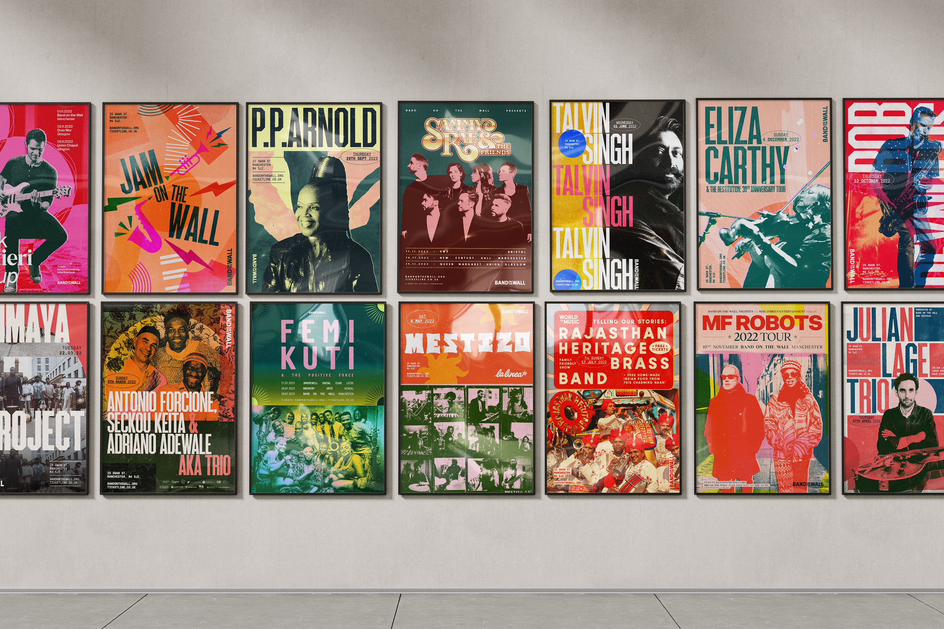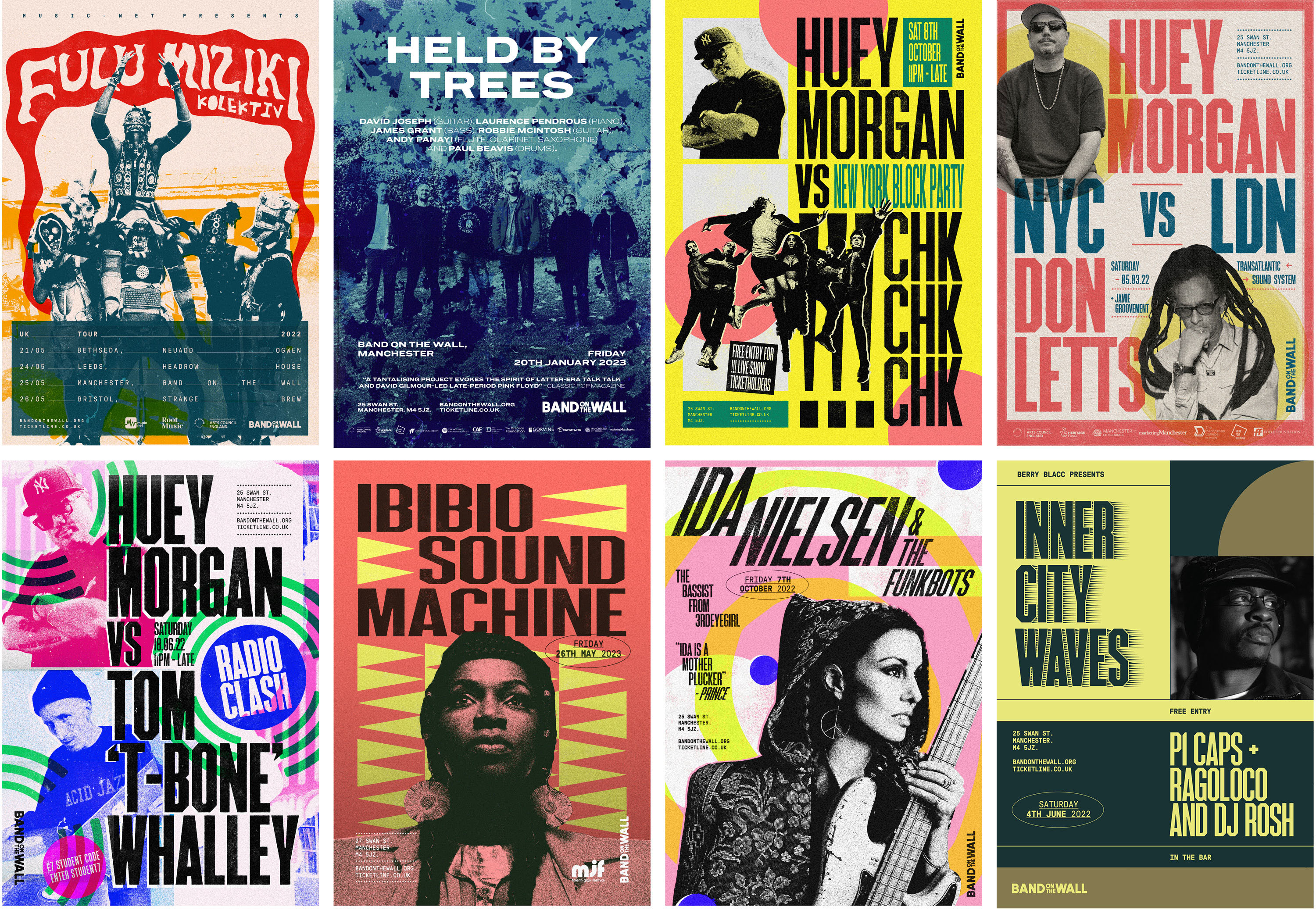 As a follow‑on from our rebrand of Band on the Wall, we created a distinctive style that’s instantly recognisable and carrying the same quality as the output of this legendary venue.