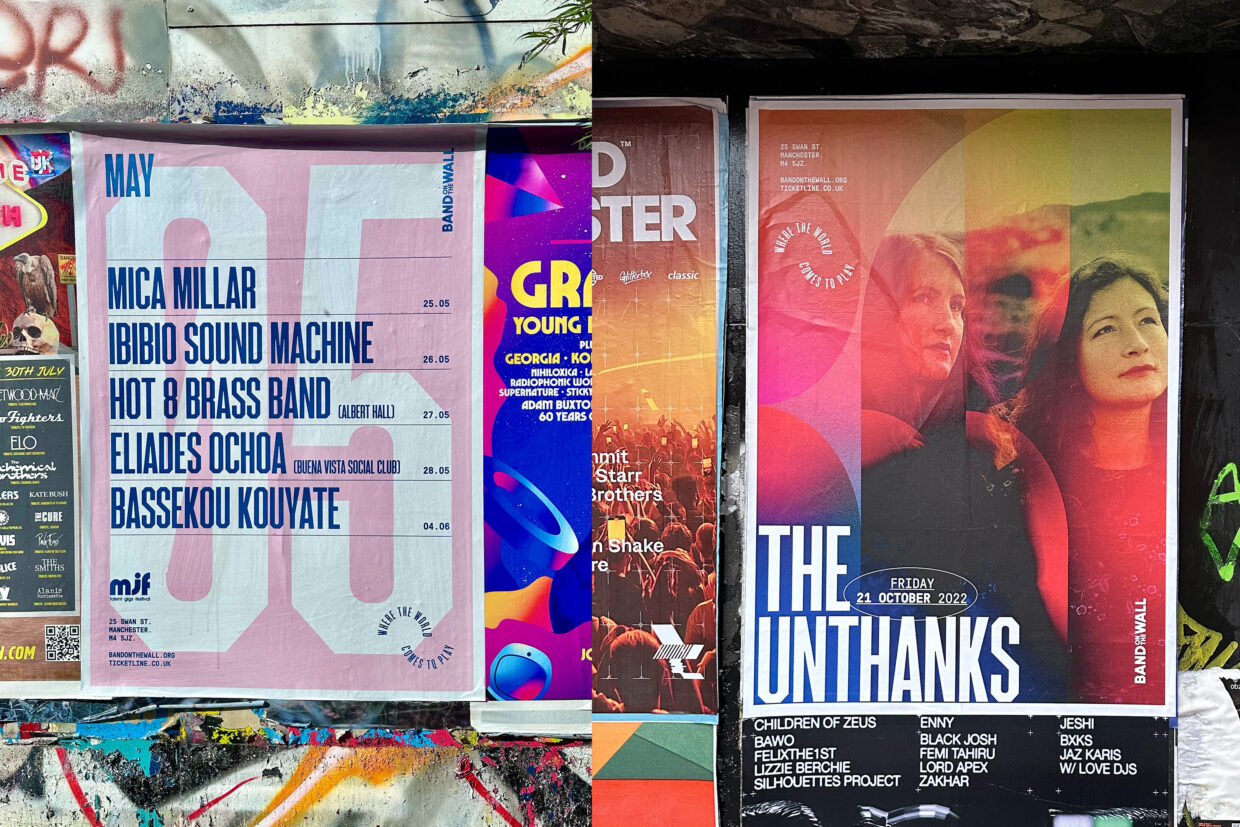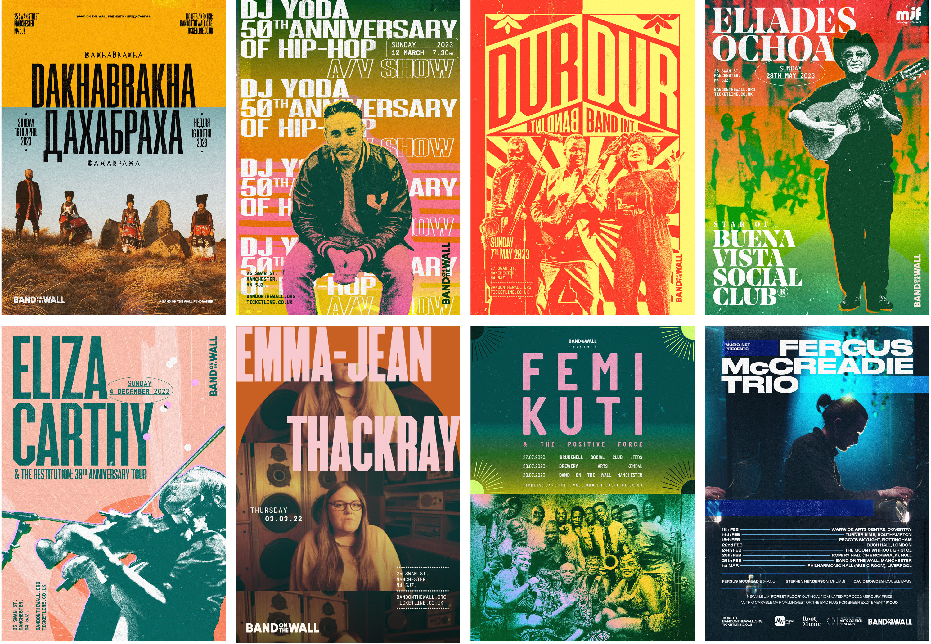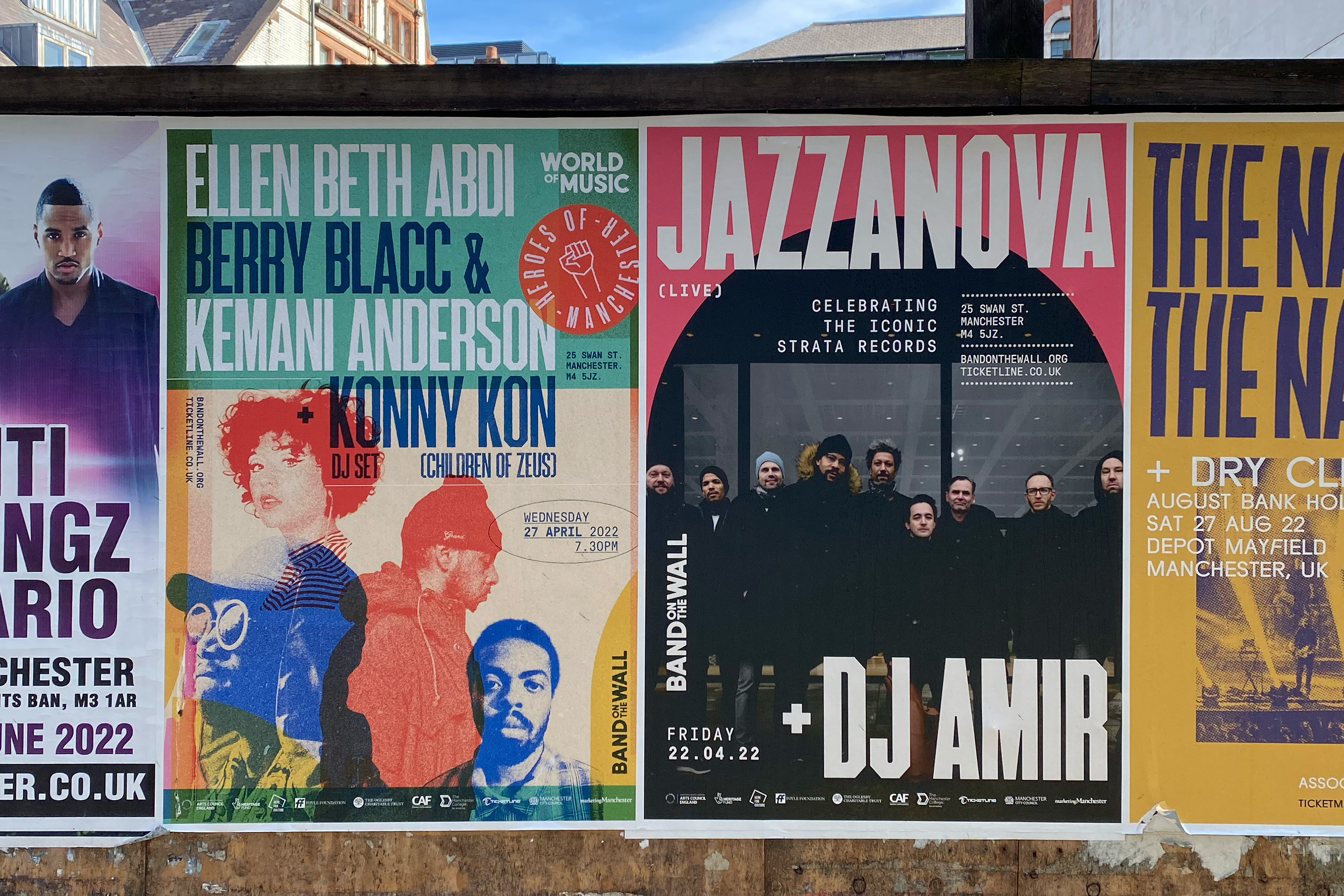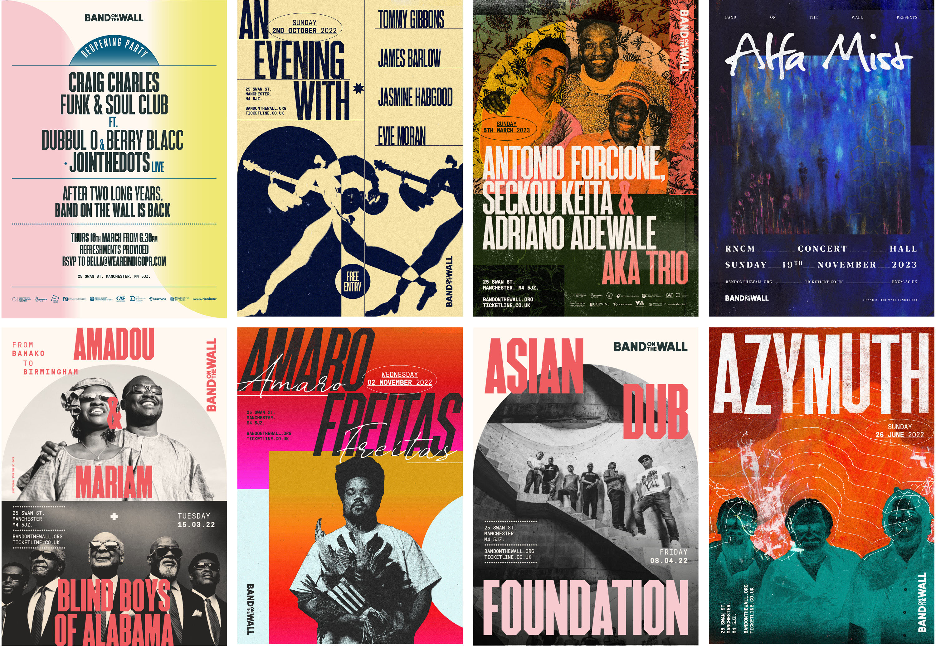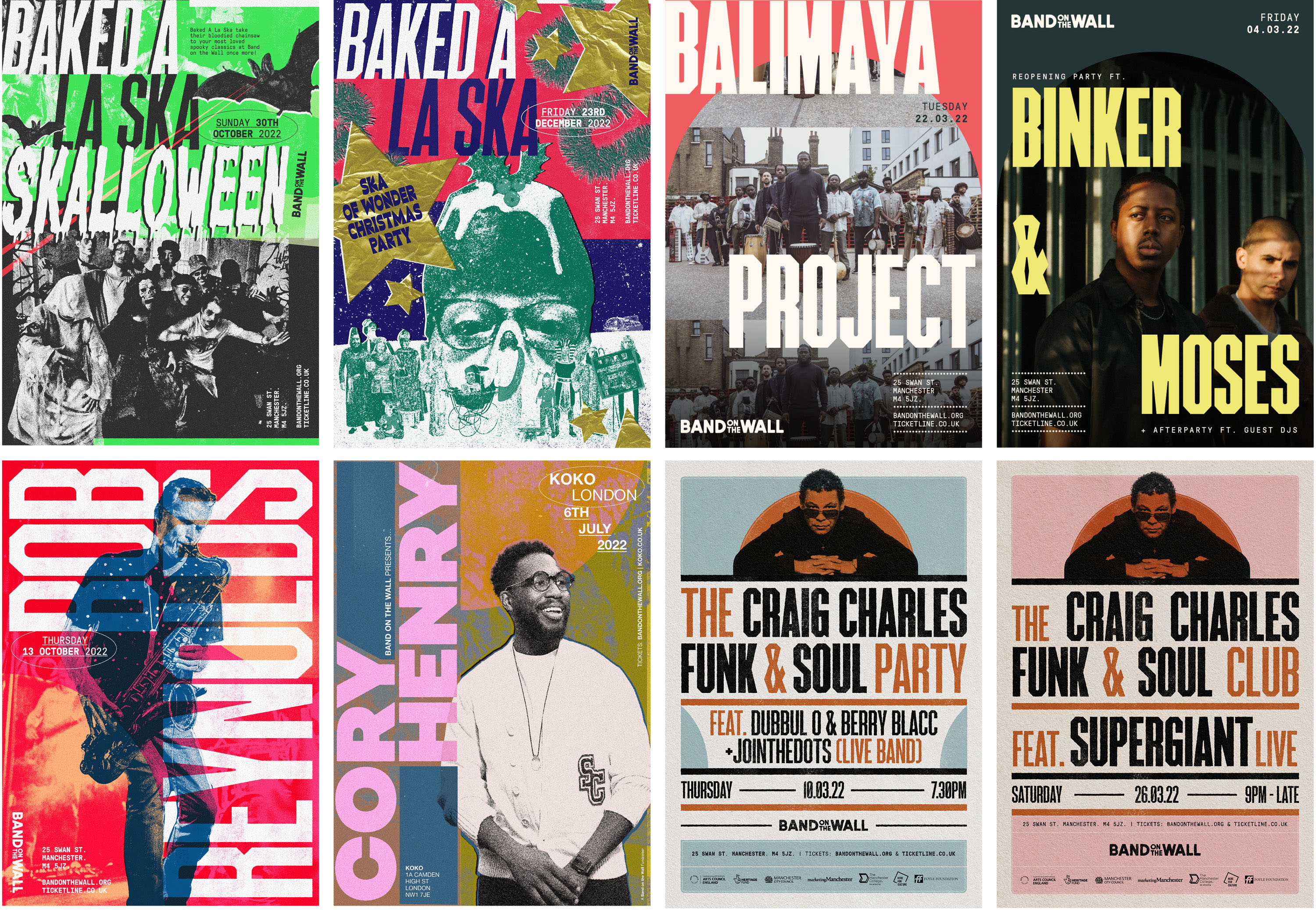As a follow‑on from our rebrand of Band on the Wall, we created a distinctive style that’s instantly recognisable and carrying the same quality as the output of this legendary venue.