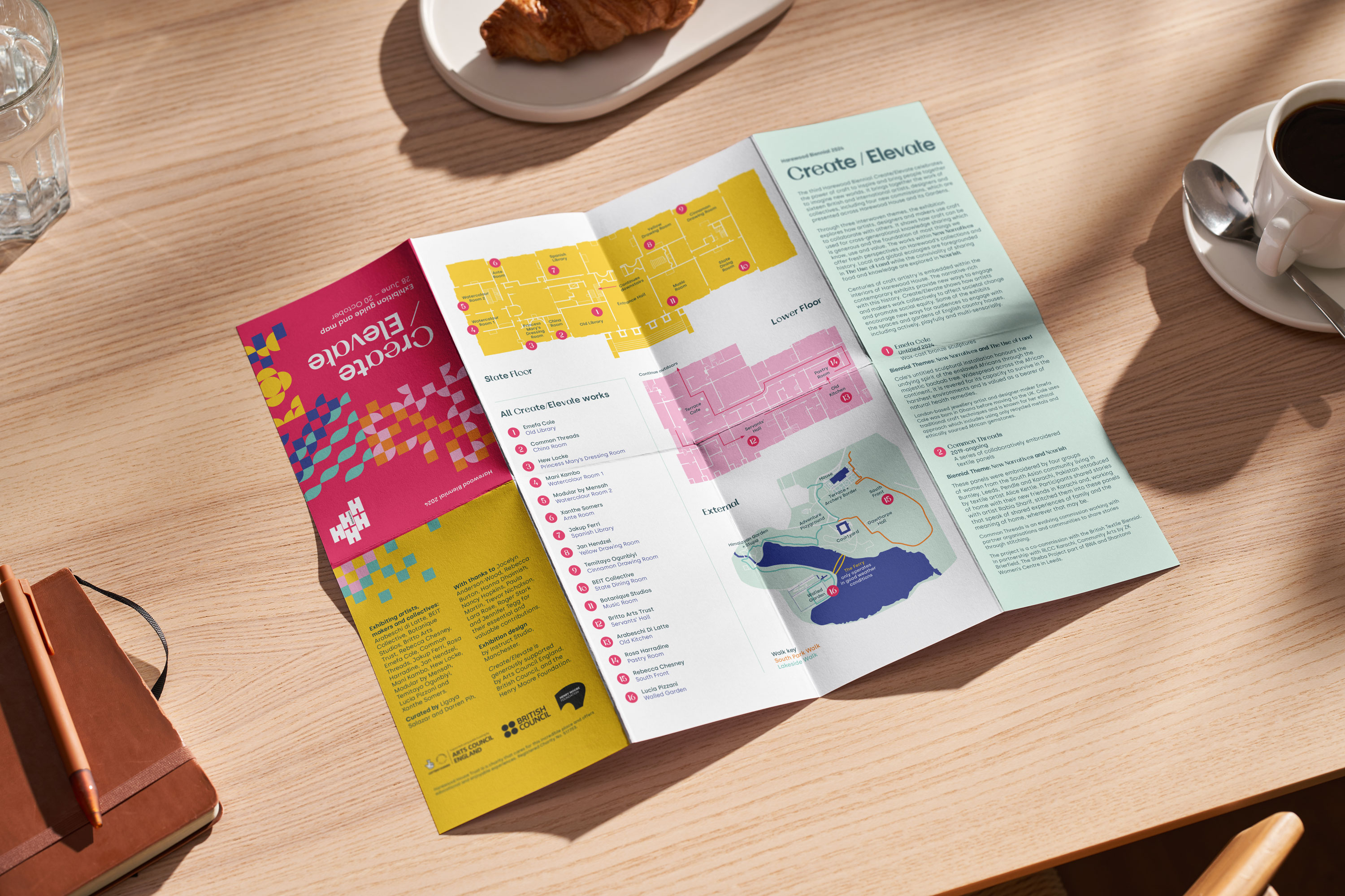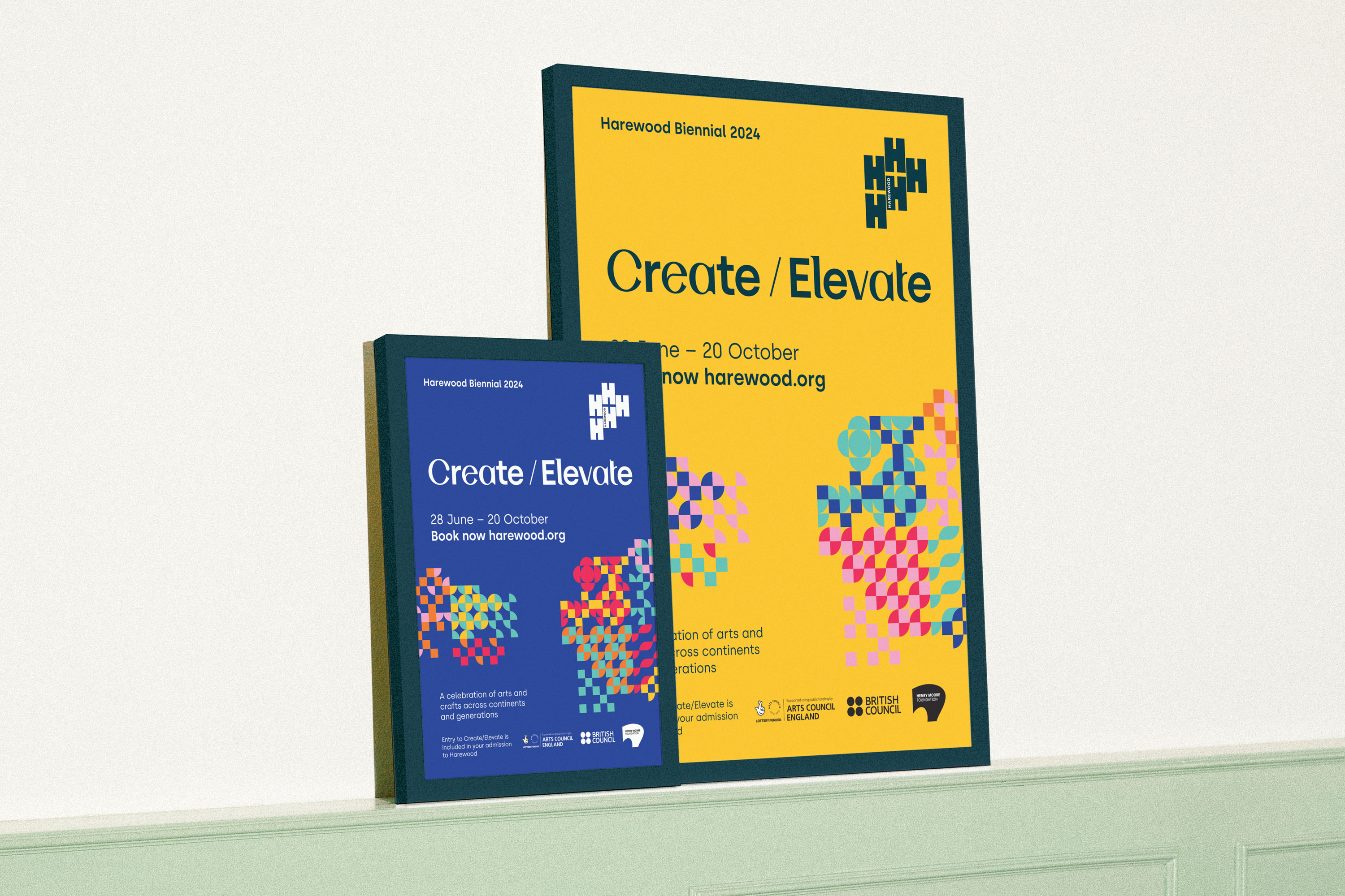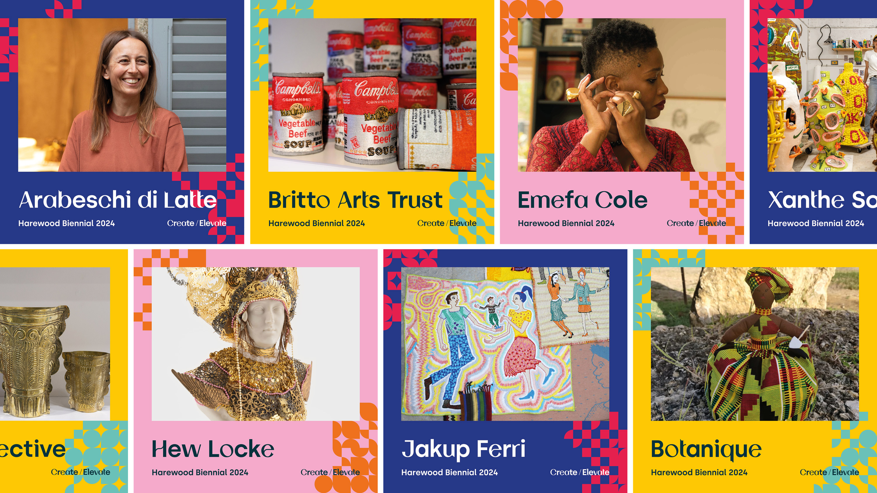 The third edition of Harewood Biennial, Create/Elevate, celebrated the power of craft to surprise, inspire and bring people together to imagine new worlds. Working alongside curators Darren Phi and Ligaya Salazar we set out to build an identity for the 2025 edition of the biennial that is vibrant and accessible with a crafted, thoughtful approach.