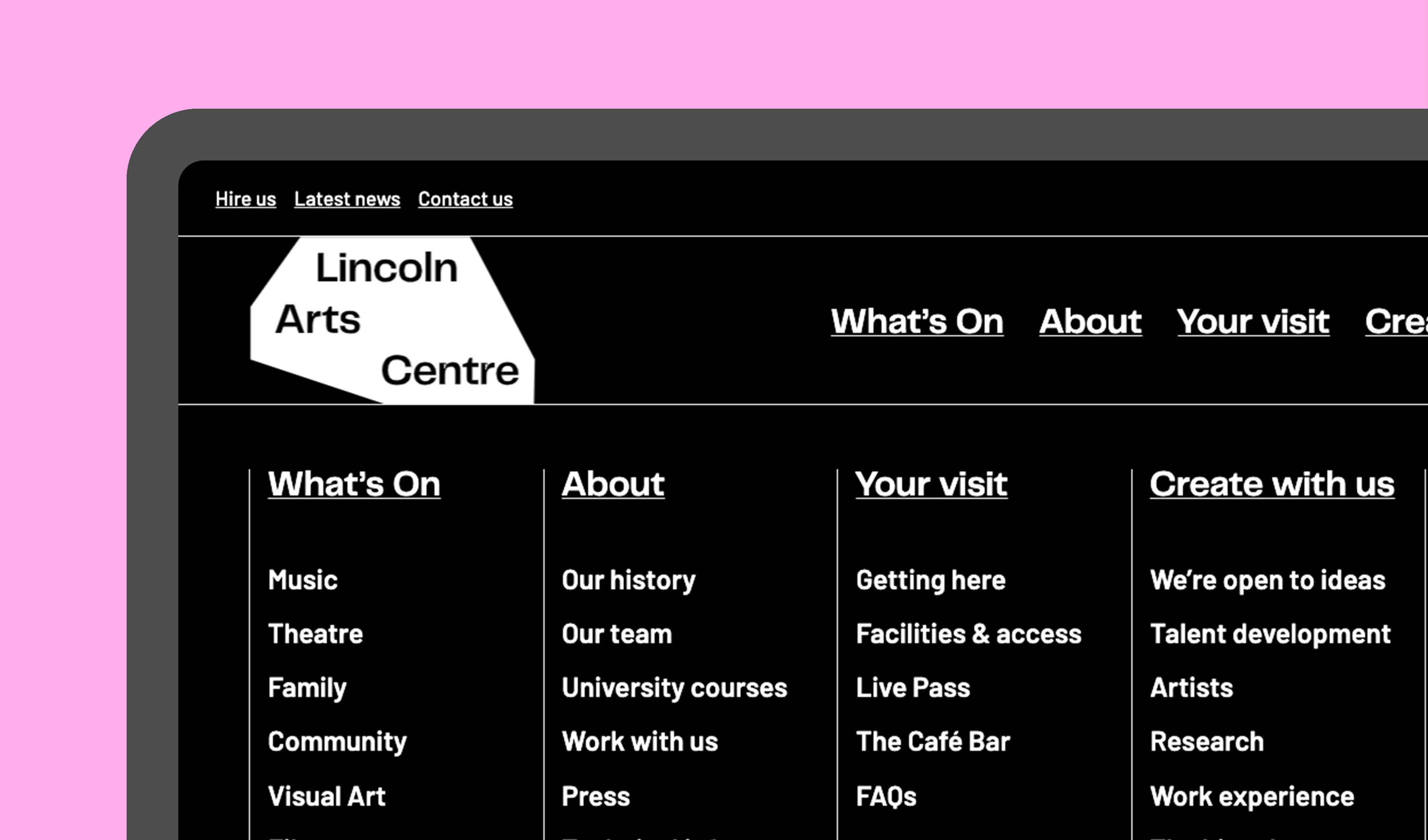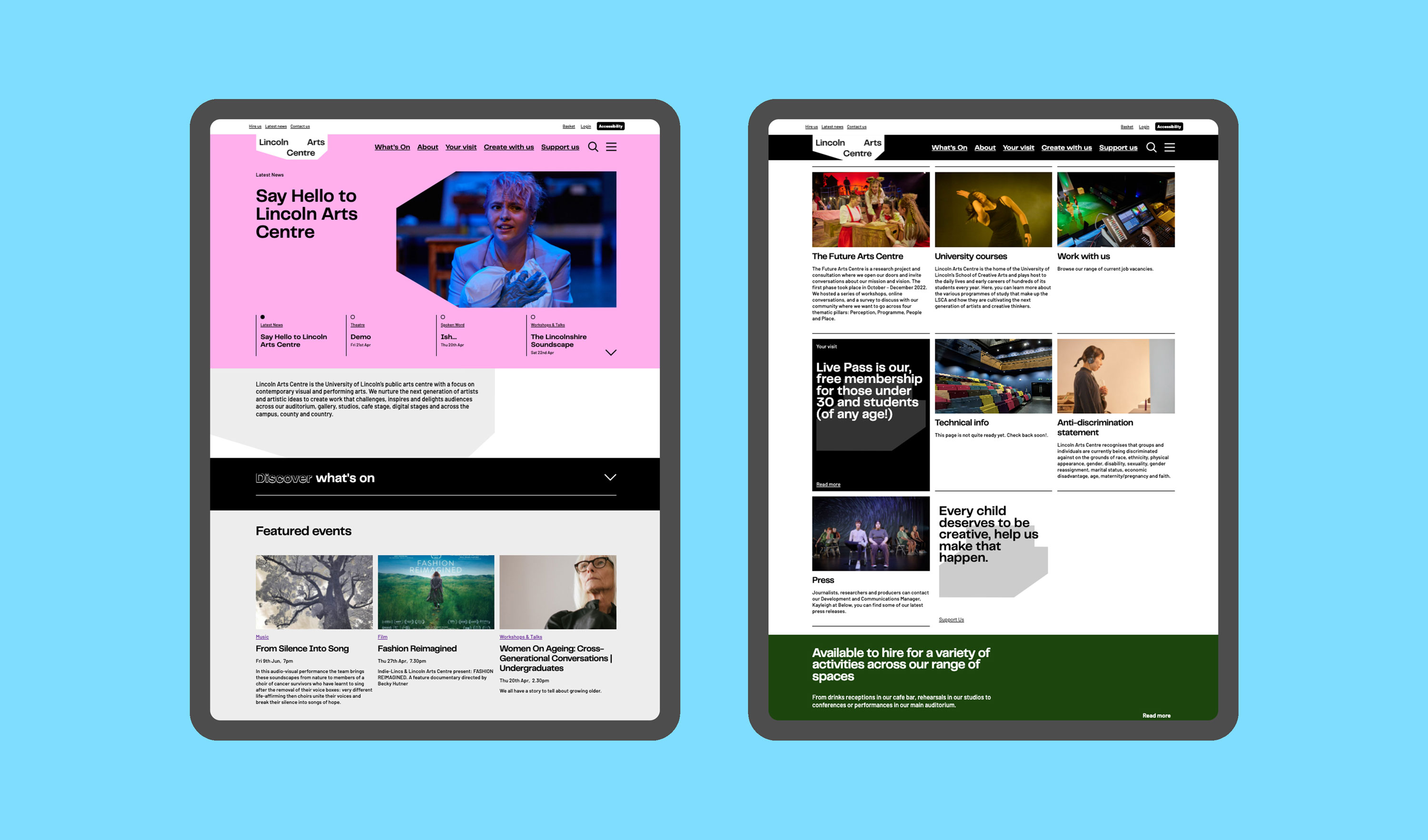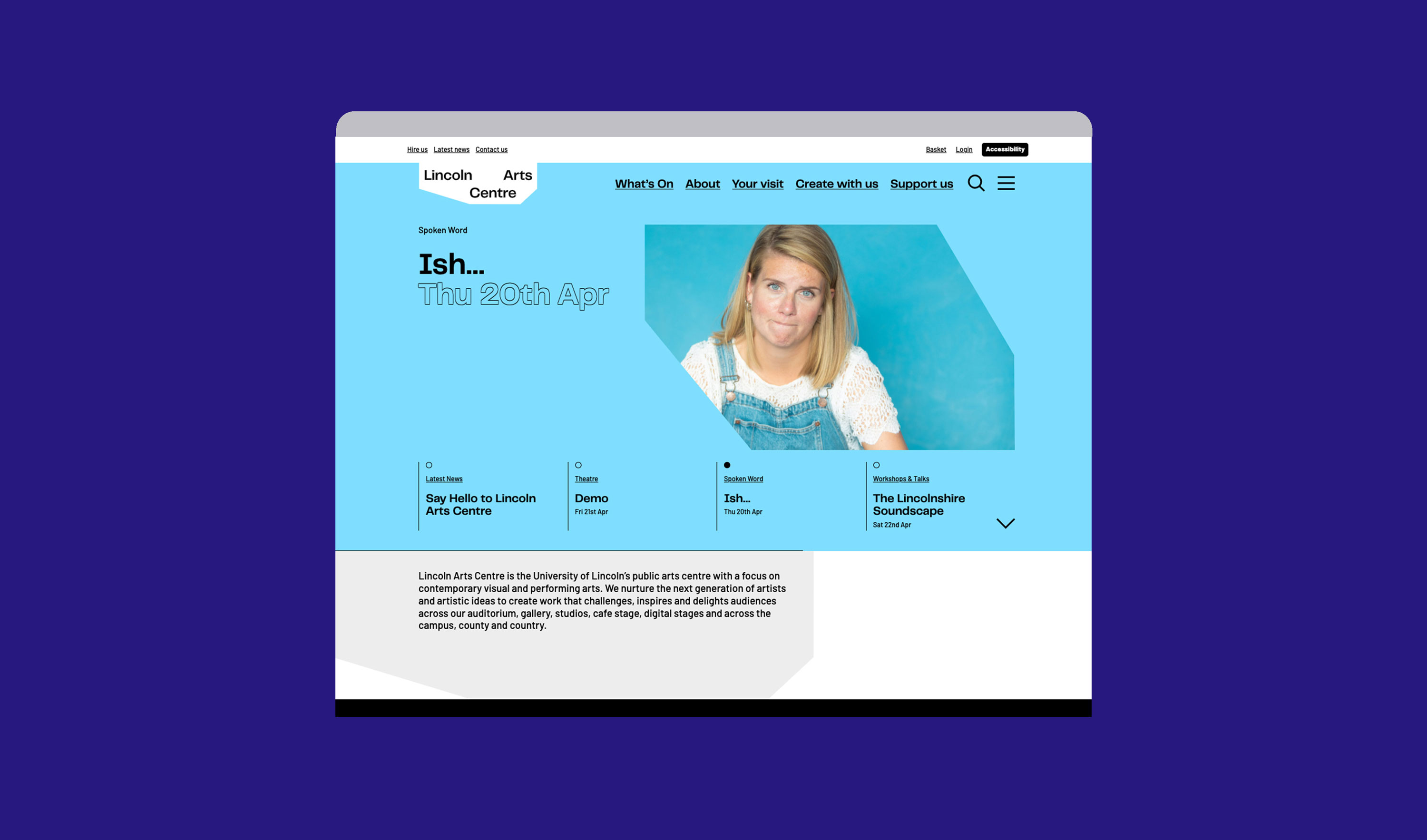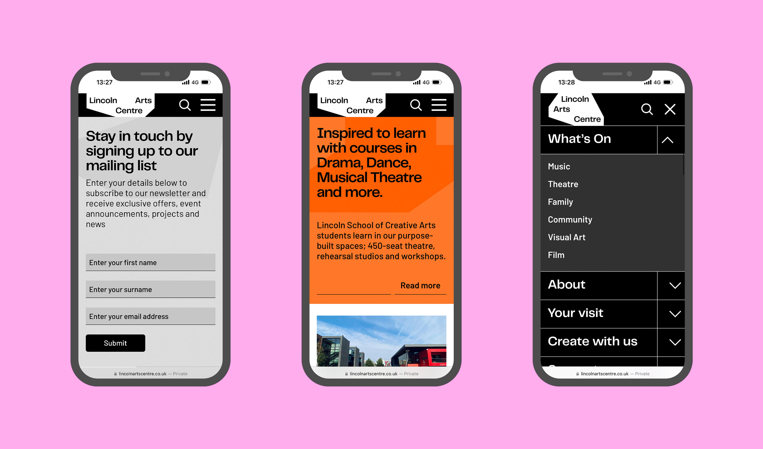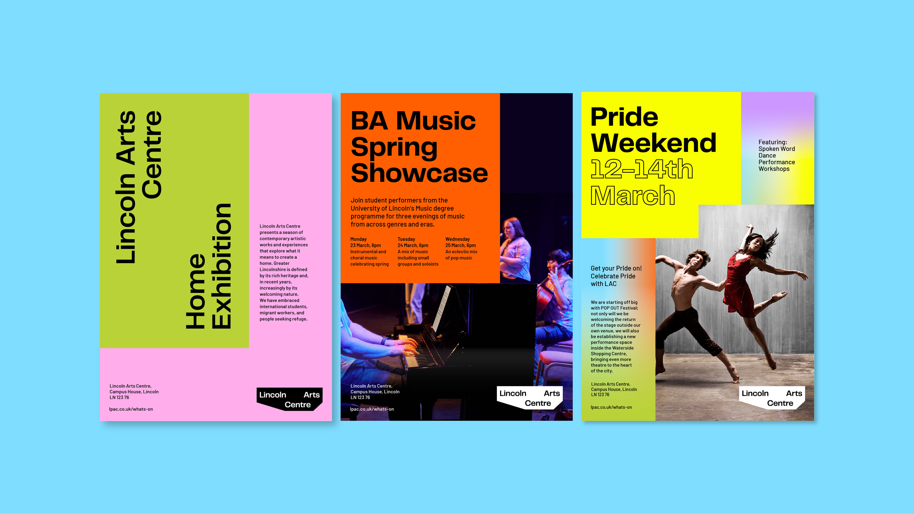 Spearheaded by a new artistic approach and informed by extensive consultation, we worked with the team on a new brand strategy and a change of name – simplifying Lincoln Performing Arts Centre (LPAC) to Lincoln Arts Centre.